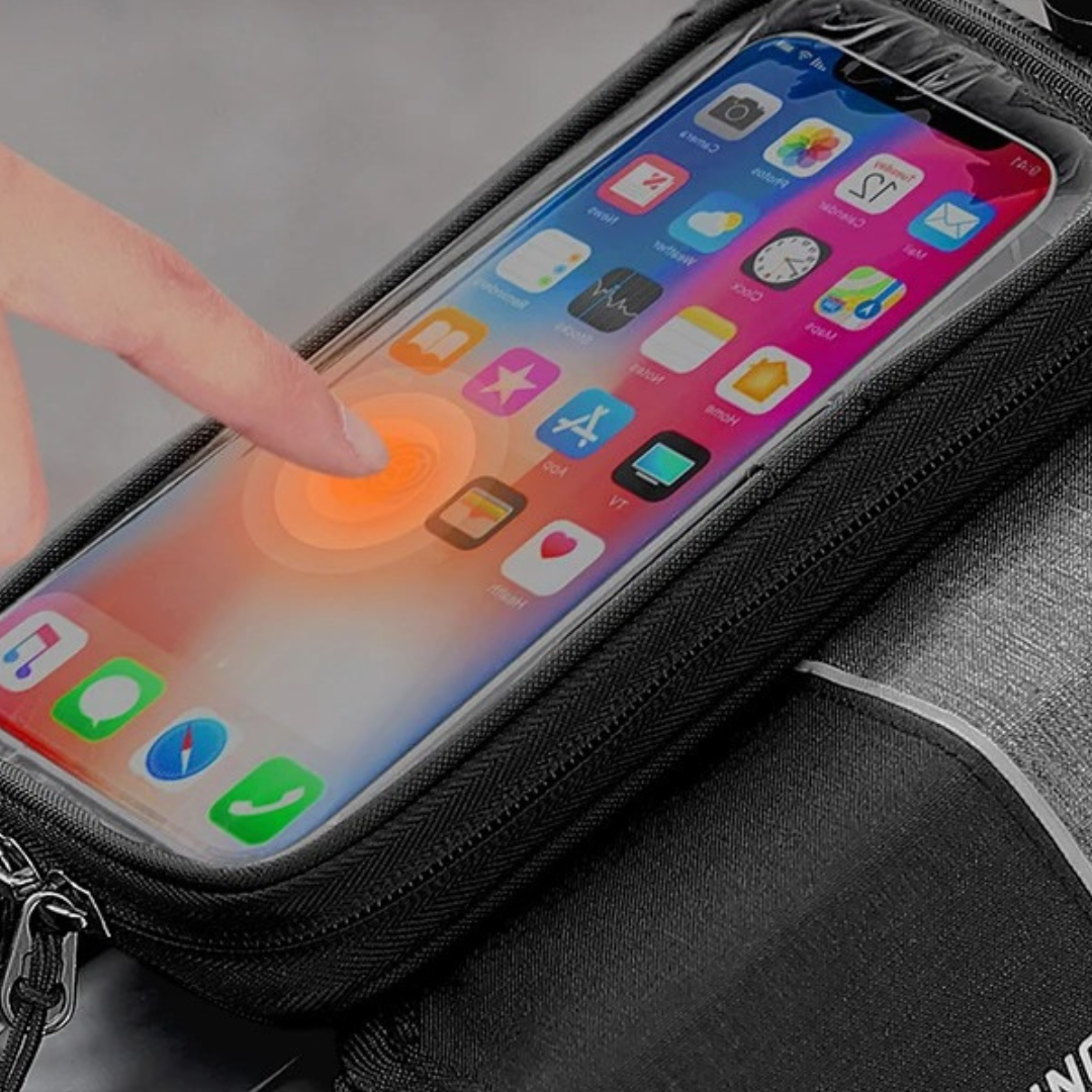 Imaginez un trajet fluide, où vos essentiels (téléphone, clés, collation) sont sécurisés et accessibles en un clin d'œil. La Sacoche Vélo Cadre se fixe sur le cadre avant de votre vélo, vous offrant un espace de rangement intelligent et facile d'accès.